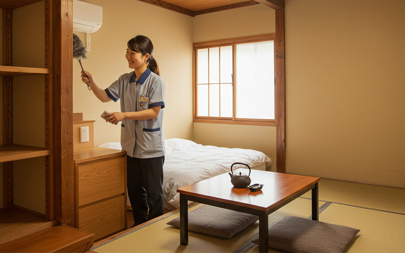 ホテル清掃をはじめ、民泊施設の清掃、ハウスキーピング、美装清掃、学校トイレ、工場内清掃、ピッキング業務など、